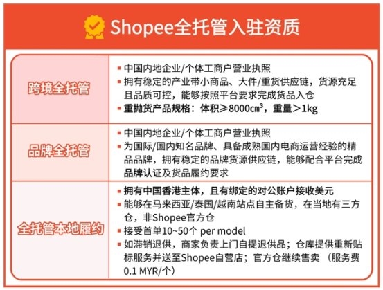 把握出海风口,必先明确准入标准——Shopee全托管三大模式入驻资质简洁清晰,适配不同类型商家,快速打通出海通道,具体入驻要求如下: