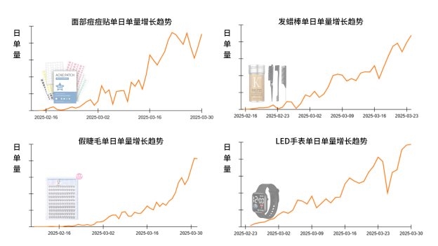 从这痘痘贴新款单品成长时间线来看,刚上新之时,其便显示出不同往常的单量增长态势。据了解,Shopee全托管短视频运营团队,抓住了产品便捷的使用性、强力的吸附效果,且具有多图案多颜色选择的产品亮点,定制化制作了产品种草类短视频进行推广,上架不到7天,其日曝光量便已突破380,000。不久,新品便快速突破了日均400单的冷启动阈值,搜索转化率大幅提升远超以往同类目新品平均水平。随着该单品被锁定新品早鸟价资源位,Shopee全托管官方瞄准市场动态,为其加大了价格补贴优惠券力度,让产品通过限时低价折扣,提升产品转化,使其出单量如同按下加速键,在上新30天之际,订单量快速突破5,000单。